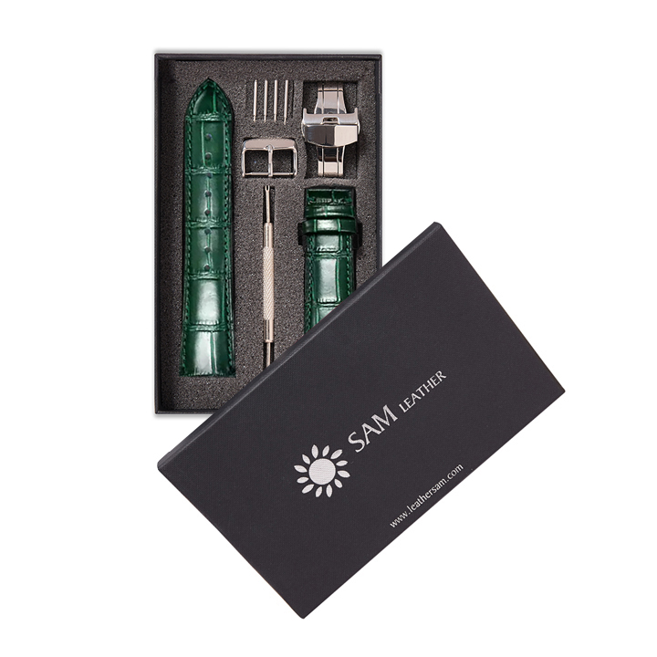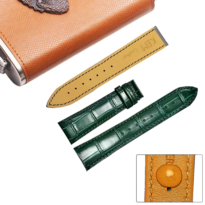 ✨Dây Đồng Hồ Da Cá Sấu Xanh Lá Cây Size 20/22mm - Dây Đeo Da Cá Sấu Thật 100% - Bảo Hành 12 Tháng