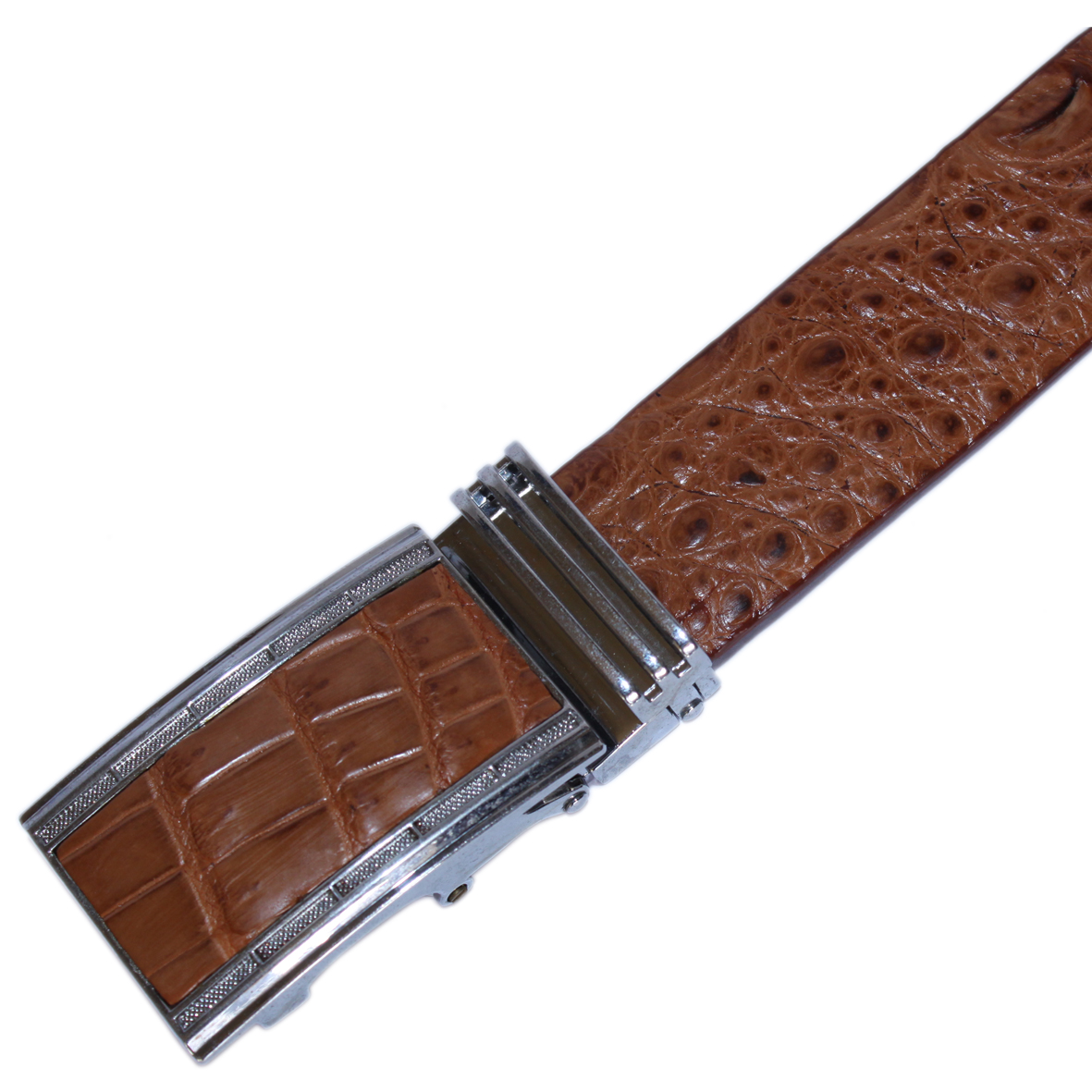 Dây nịt da cá sấu màu nâu đỏ da bụng