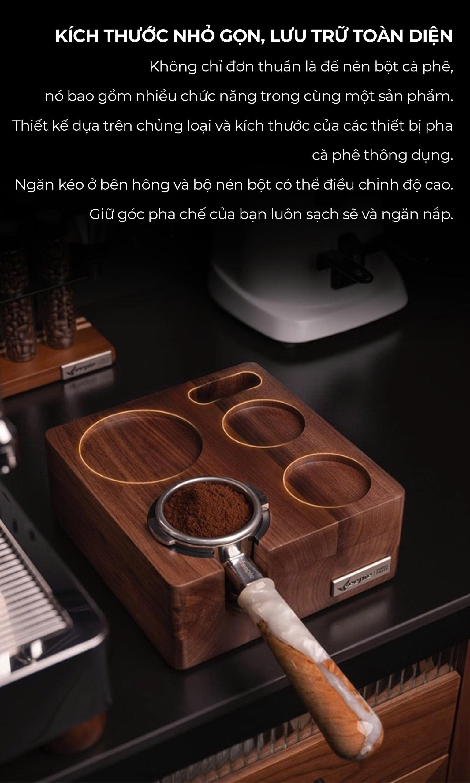 ️ Hỗ trợ barista nén cà phê dễ dàng hơn, cân bằng hơn, tăng hiệu suất pha chế.
