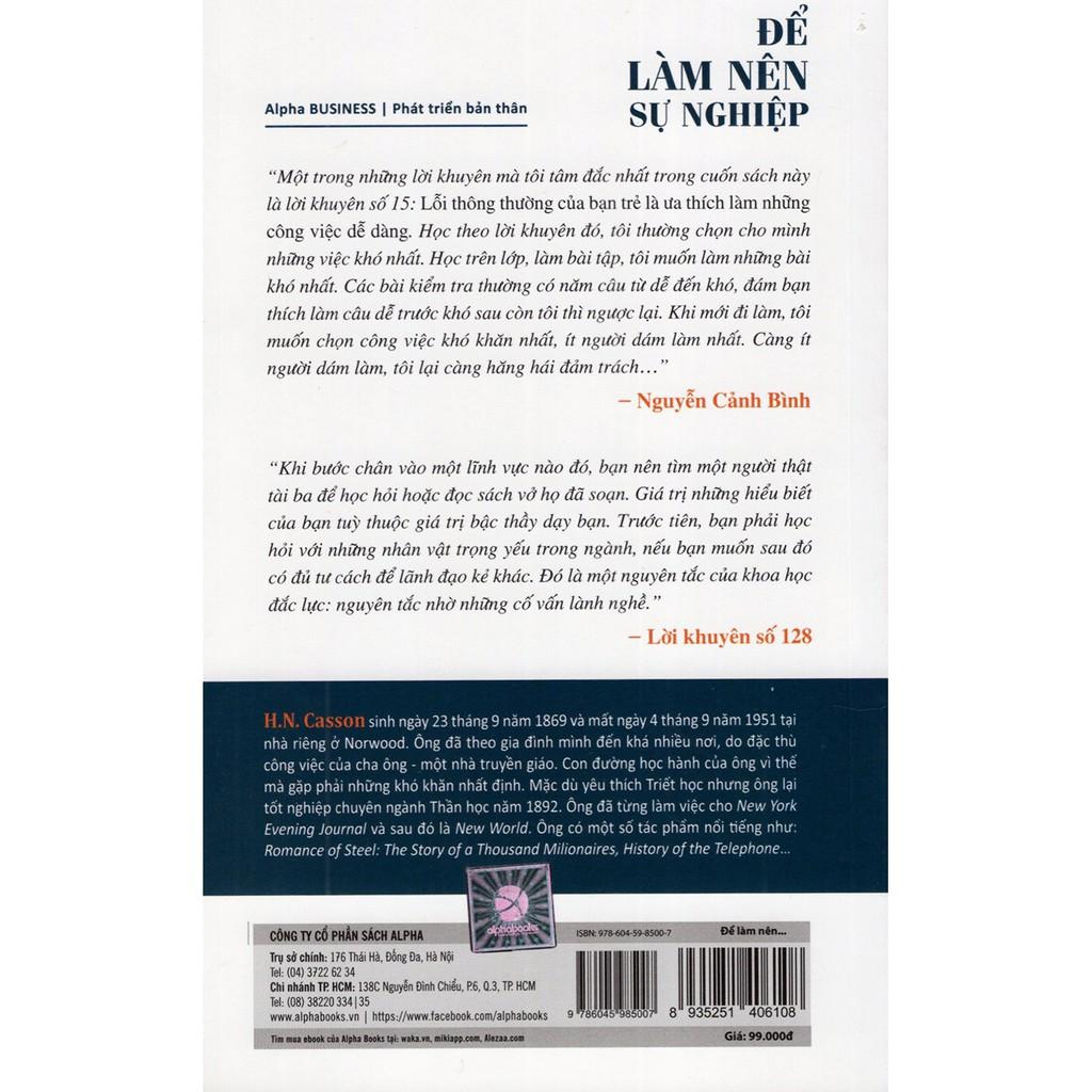 "Năm 1995, tôi tình cờ mua cuốn sách Làm nên. Tôi đã mê mải đọc nó chỉ trong một ngày. Làm nên đã trở thành sách gối đầu giường của tôi thời đó. Tôi đã đọc được ở đây những lời khuyên vô cùng giá trị và hữu ích mà không thể tìm thấy ở bất cứ đâu. Đọc xong nó, tôi tự tin hơn với những suy nghĩ có phần "lệch lạc" so với lối suy nghĩ thông thường, so với những gì tôi thường được dạy. Tôi bắt đầu thay đổi cách dùng thời gian rảnh rỗi của mình. Tôi bớt đi cà phê, tụ tập với đám bạn mà tìm kiếm những việc hữu ích cho mình, đó là đọc sách và suy ngẫm, gặp gỡ những người giỏi hơn mình để trò chuyện, trao đổ"