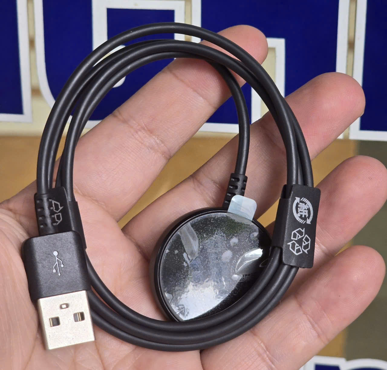 Đế sạc có tích hợp nam châm hút vào mặt sau đồng hồ, hạn chế tình trạng sạc chập chờn hay sạc lâu vào pin, đế sạc sử dụng chân kết nối Usb phổ biến