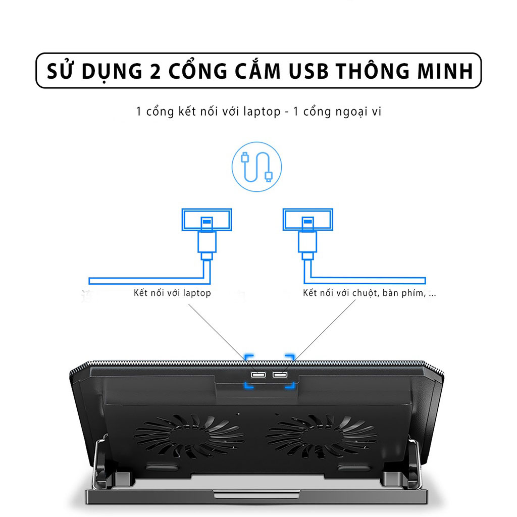 Mua tại Tiktok- Đế Tản Nhiệt laptop N99 loại 2 quạt - - Đế Tản Nhiệt Laptop N99 2 Fan đế nâng có thiết kế tương đối nhỏ gọn, phong cách trẻ trung. Khung bên ngoài làm