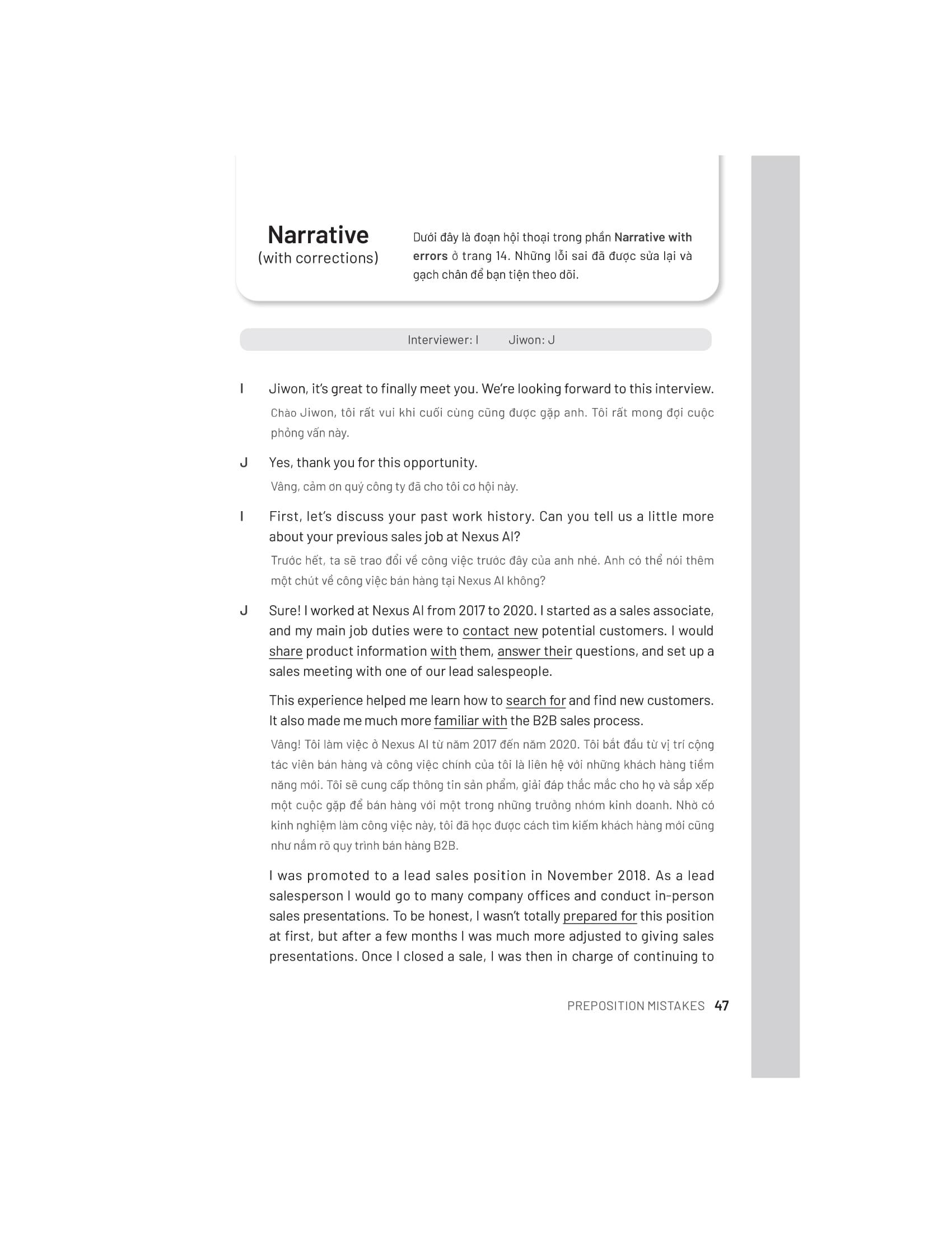 Sách được chia thành 10 chương, trong đó chương 1-9 tập trung vào các nhóm lỗi lớn mà người học tiếng Anh thường mắc phải, và chương 10 đưa ra các từ vựng tiếng Anh công sở phổ biến.