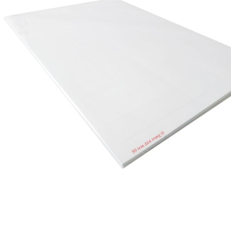 Giấy in mã vạch A4 Tomy 140 có 80 tem bế sẵn trên tờ giấy khổ A4 dùng để in mã vạch tem nhãn, không cần dùng máy in mã vạch mà in bằng máy in laser văn phòng, máy in&photocopy 2in1.