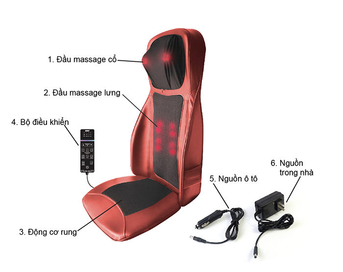 Tính năng massage đa năng: Nhiệt hồng ngoại, con lăn xoay dây ấn 360 độ, mát xa rung