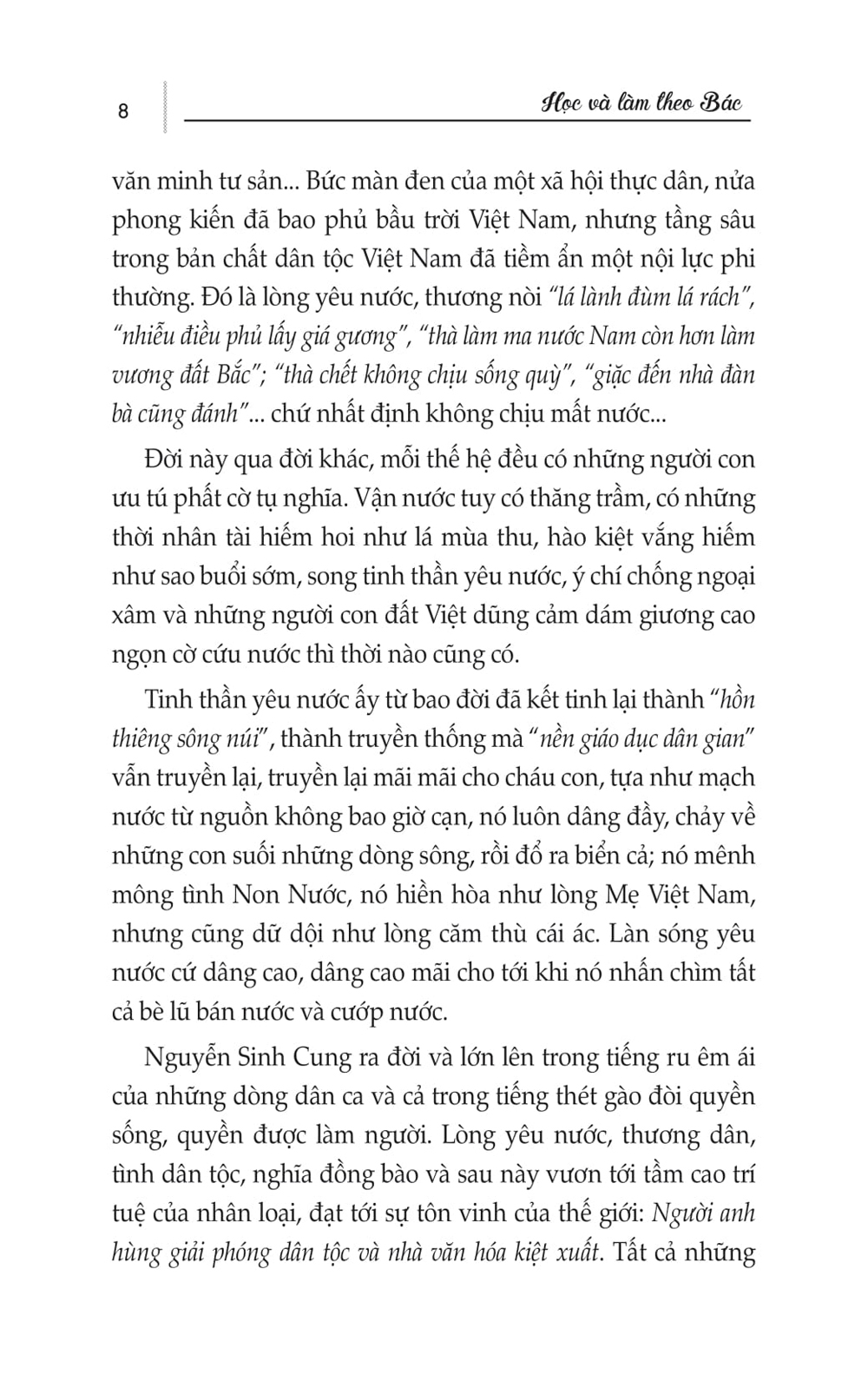 Mua tại TiktokBộ sách “Học và làm theo Bác” gồm 5 quyển, giúp bạn đọc tìm hiểu, nghiên cứu học tập tư tưởng, đạo đức và tác phong Hồ Chí Minh. Đem sức ta mà giải phóng cho ta giúp chúng ta cảm nhận được những tư tưởng, tình cảm của Người đối với phụ nữ - Phụ nữ là một lực lượng hết sức quan trọng góp phần tạo nên động lực mạnh mẽ của toàn xã hội và là mục tiêu của sự nghiệp công nghiệp hóa, hiện đại hóa đất nước. Qua đó góp tiếng nói vào việc tìm hiểu lòng nhân ái, bao la của Bác – một trái tim yêu thương “mọi kiếp người”.