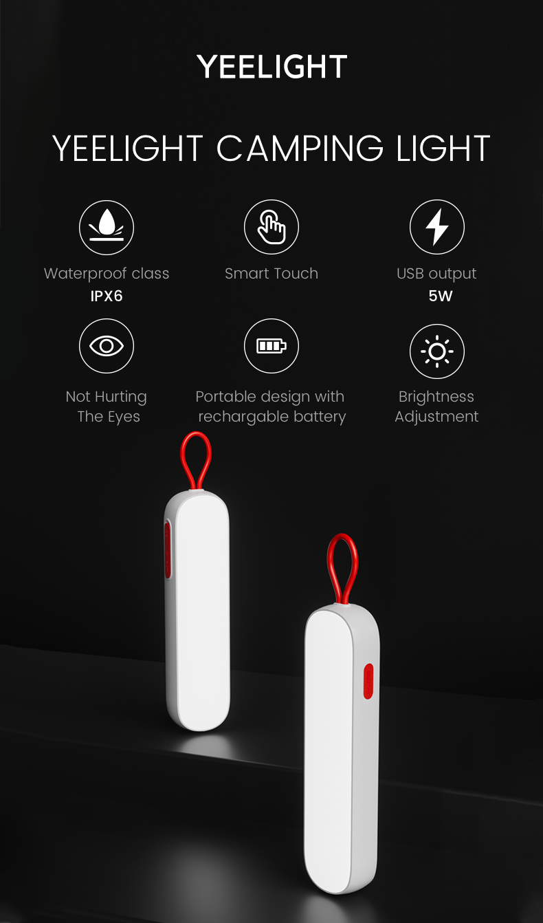 Đèn cắm trại Yeelight có thiết kế hình con nhộng 20cm với các góc bo tròn đều, mềm mại, trọng lượng nhẹ, cho phép bạn dễ dàng mang đèn đồng hành cùng mình trong mọi chuyến đi mà không chiếm quá nhiều diện tích, gánh nặng cho hành lý. Bên cạnh đó, các chi tiết nhỏ trên đèn như móc treo cũng được hoàn thiện rất chắc chắn và có thể xách đi hoặc treo lên để tăng khả năng chiếu sáng xung quanh.
