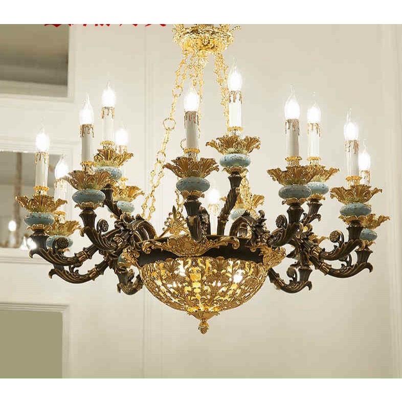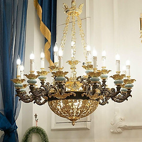 Từ rất lâu, đèn chùm đã là vật dụng chiếu sáng quen thuộc góp phần trang hoàng mọi không gian. Ngay từ khi xuất hiện đầu tiên vào thời trung cổ phương Tây, ngay lập tức chúng trở thành thước đo chuẩn mực của sự giàu sang, xa hoa, bề thế. Bởi lẽ, sản phẩm chỉ có mặt trong có gia đình thuộc tầng lớp vương giả, thượng lưu giai đoạn này. Trôi theo chuyển động của bánh xe thời gian, hiện nay, đèn chùm đã được sử dụng rộng rãi với kiểu dáng và mẫu mã phong phú đa dạng đáp ứng hoàn toàn nhu cầu và sở thích riêng của từng người. Trong đó, những mẫu đèn chùm đang rất được yêu thích chiều lòng cả những vị khách khó tính nhất. Mô tả sản phẩm Phân loại sản phẩm: 15 tay Kích thước sản phẩm: 1000x780 (mm) Mỗi tay đèn làm bằng hợp kim sơn tĩnh điện được khéo léo mạ một lớp vàng bên ngoài và uốn lượn theo đường cong mềm mại giúp làm tăng độ sang trọng cho toàn thể chiếc đèn chùm. Những viên đá thiên nhiên cẩm thạch dưới đui đèn được mài giũa tỉ mẩn để được hình khối tròn đầy, tạo điểm nhấn riêng biệt cho mẫu đèn chùm này. Ánh sáng vàng nhẹ nhàng, ấm áp. Sử dụng ánh sáng màu vàng sẽ tạo ra được không gian ấm cúng và dễ chịu hơn. Bóng đèn cao cấp có tuổi thọ trung bình cao Như các mẫu đèn chùm cổ điển, đèn có cấu tạo chi tiết và phức tạp. Đèn sử dụng chất liệu mạ vàng cao cấp, thu hút và bắt mắt bạn ngay từ lần đầu tiên nhìn thấy. Đèn bao gồm tấm ốp trần, dây xích treo cố định, chao đèn lớn và hệ thống tay đỡ Hệ thống đèn nến được sử dụng công nghệ đèn hiện đại giúp tuổi thọ bóng cao. Chụp nến pha lê trong suốt cao cấp giúp ánh sáng tỏa ra mạnh mẽ mà không chói lóa. Tất cả tạo nên một sản phẩm quyến rũ, quý phái, mang hơi thở tinh tế, trang nhã cho không gian phòng bạn. ĐÈN TRANG TRÍ NỘI THẤT CAO CẤP CAM KẾT: •CHỈ BÁN HÀNG LOẠI 1, HÀNG CHẤT LƯỢNG CAO NHẤT (THỊ TRƯỜNG RẤT NHIỀU HÀNG GIÁ RẺ NHƯNG RẤT KÉM CHẤT LƯỢNG) • SẢN PHẨM ĐÚNG MÔ TẢ; • SẢN PHẨM ĐƯỢC KIỂM TRA KỸ TRƯỚC KHI GIAO TỚI TAY KHÁCH HÀNG; • SẢN PHẨM ĐƯỢC BẢO HÀNH 2 NĂM • 1 ĐỔI 1 TRONG VÒNG 7 NGÀY, MIỄN PHÍ ĐỔI TRẢ NẾU CÓ LỖI TỪ NHÀ SẢN XUẤT HOẶC VẬN CHUYỂN