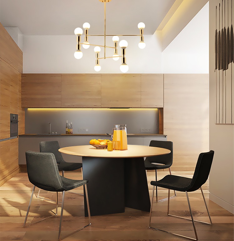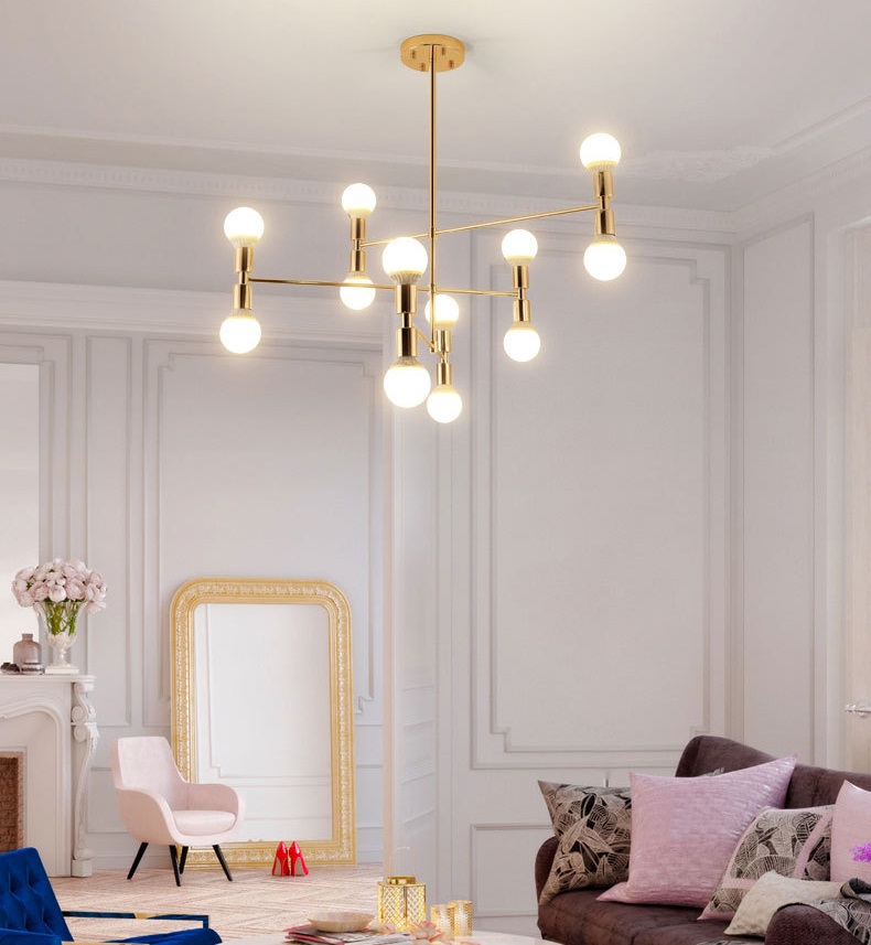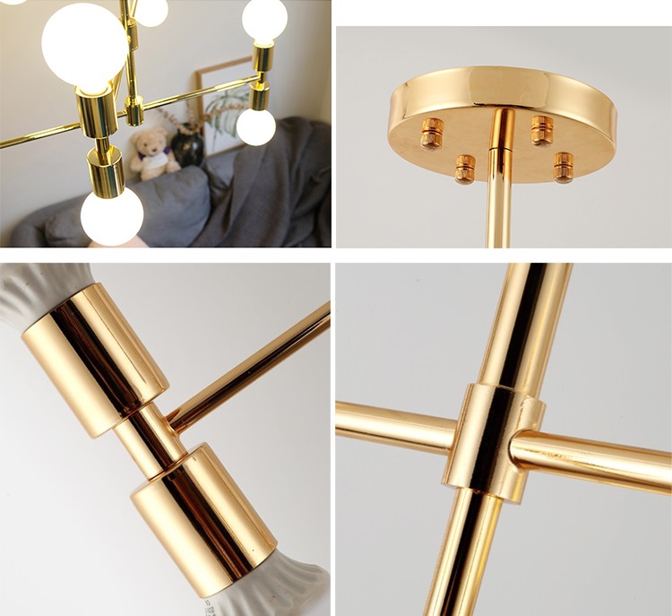 Đèn thả chùm là sản phẩm đèn trang trí nội thất cho không gian phòng khách, phòng ngủ đang được yêu thích nhất hiện nay. Ngoài tác dụng chiếu sáng thì các mẫu đèn chùm đẹp còn giúp tạo ra một không gian sang trọng, ấn tượng, đẳng cấp, thể hiện gu thẩm mỹ của gia chủ. Đèm chùm trang trí theo phong cách châu Âu hiện đại, tinh tế, bắt mắt  Chất liệu: khung sắt sơn tĩnh điện cao cấp Đèn đã bao gồm 12 bóng led 3W Thích hợp với mọi không gian Ứng dụng: nhà hàng, khách sạn, shop quần áo, phòng khách, phòng bếp, phòng ngủ, Kích thước sản phẩm: 673815(cm) Sản phẩm gồm 2 loại : Thân đen và thân vàng Thiết kế của đèn dễ lắp đặt, dễ sử dụng, giảm thiểu thời gian thi công. Bật/ Tắt tức thì, ánh sáng không rung, không nháy. Tuổi thọ đèn cao, thân thiện với môi trường, không chứa chất độc hại, có thể tái chế.