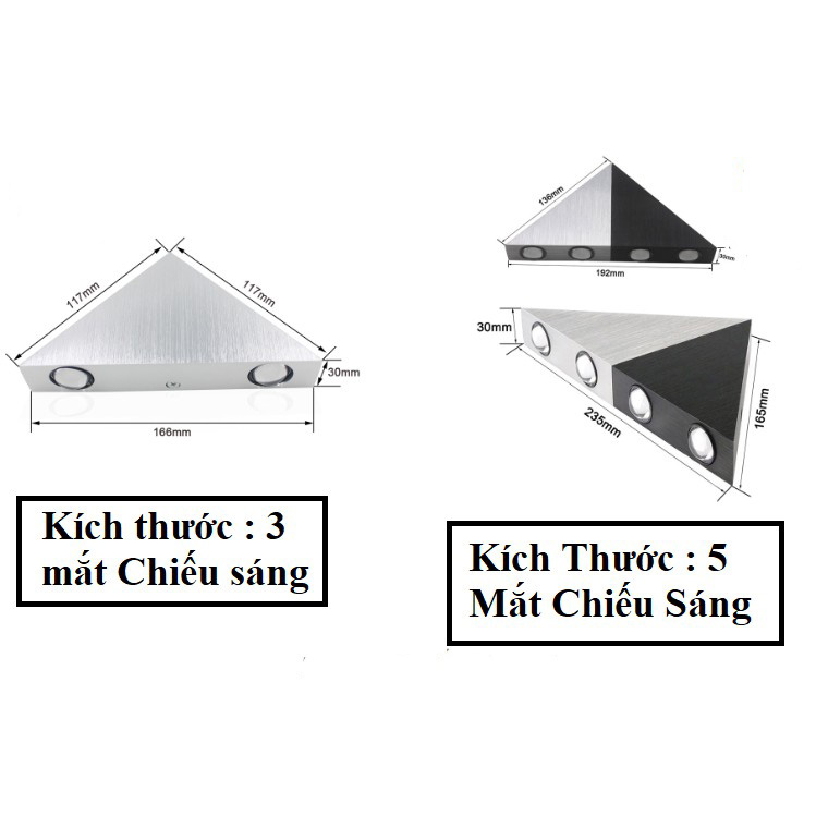 - 5 Mắt Led : 235 x 165 x 30mm Chất liệu : Hợp Kim Nhôm Màu sắc : Đen ; Đen Bạc Ánh Sáng Trắng / Vàng / Nhiều Màu Góc chùm 120 độ Tuổi thọ : 50000 giờ Diện tích chiếu sáng : ~ 5 - 10m2 Hướng sáng lên và xuống Sản phẩm chống thấm nước, bền bỉ với thời gian, có thể sử dụng ngoài trời Thông Lượng sáng: 90-100LM/W Đèn tường led hay còn gọi là đèn led gắn tường là một trong những sản phẩm thiết kế đẹp tạo nên điểm nhấn cho không gian nhà bạn. Đèn tường đa phần theo xu hướng và kiểu dáng hiện đại, làm nổi bật không gian xung quanh với ánh sáng vàng tạo cho không gian đầm ấm cho gia đình bạn. Đèn led gắn tường thường sử dụng chất liệu nhôm tĩnh điện với chip led nhập khẩu, cho tuổi thọ chiếu sáng lên tới 50.000h. Ứng dụng Phòng khách, phòng đọc sách, nội thất, nhà bếp, nhà hàng, trung tâm mua sắm, quán cà phê, phòng trưng bày, cầu thang, lối đi,