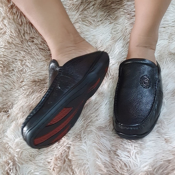 Dép Bít Mũi Nam Da Bò Thật Trường Hải Màu Đen Dép nam Thời Trang Cao cấp DN130 thiết kế với kiểu dáng đơn giản để bạn dễ dàng mang vào chân và tháo ra, thật nhanh chóng và tiện lợi, thời trang. Dễ dàng kết hợp với nhiều loại trang phục để đi học, đi làm, xuống phố cùng bạn bè, hoặc tham dự những dịp quan trọng.