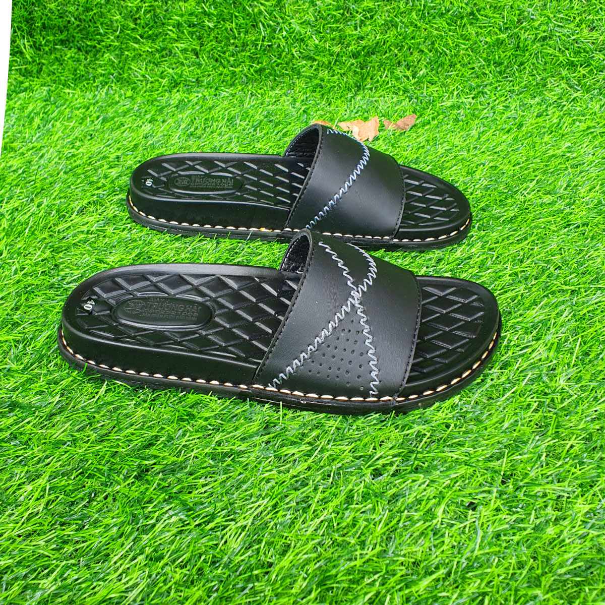 Dép nam một bản quai ngang Trường Hải da bò 2 màu đen nâu