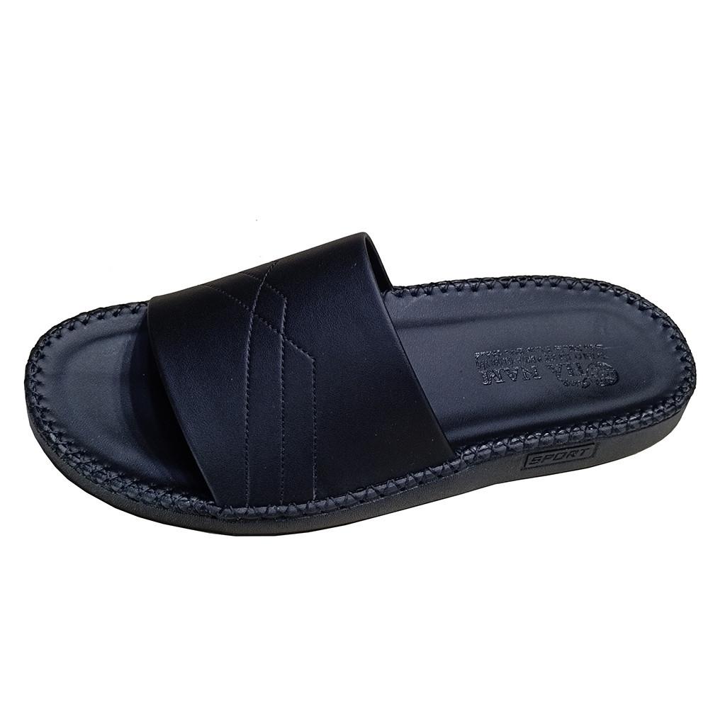 Dép Da Nam  - Lịch Lãm & Thoải Mái Mỗi Ngày - Chất liệu cao cấp: Sử dụng da tổng hợp chất lượng, mềm mại, bền bỉ theo thời gian, mang lại cảm giác êm ái và thoáng khí cho bàn chân. - Thiết kế sang trọng: Tông màu đen lịch lãm, kết hợp với đường chỉ may tinh tế và logo kim loại nổi bật – tôn lên vẻ nam tính, trưởng thành. - Đế chống trượt: Đế EVA siêu nhẹ, độ đàn hồi tốt, kết hợp vân đế tăng độ ma sát – an toàn khi di chuyển trên nhiều bề mặt. - Form ôm chân: Thiết kế bản quai ngang rộng, ôm gọn bàn chân nhưng không gây bí bách, dễ xỏ vào – thích hợp cho người trung niên và người lớn tuổi. - Ứng dụng đa năng: Phù hợp sử dụng trong nhà, đi dạo phố, đến văn phòng hoặc các dịp gặp gỡ thân mật. Lựa chọn tuyệt vời cho quý ông yêu thích sự thoải mái, đơn giản nhưng vẫn giữ được nét tinh tế trong từng bước chân.