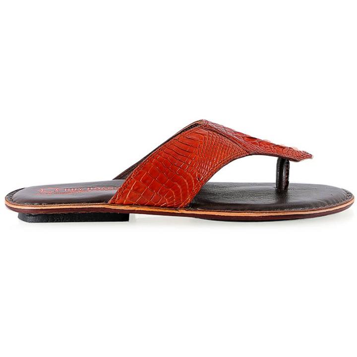 Dép nam da cá sấu 2 quai ngang màu nâu