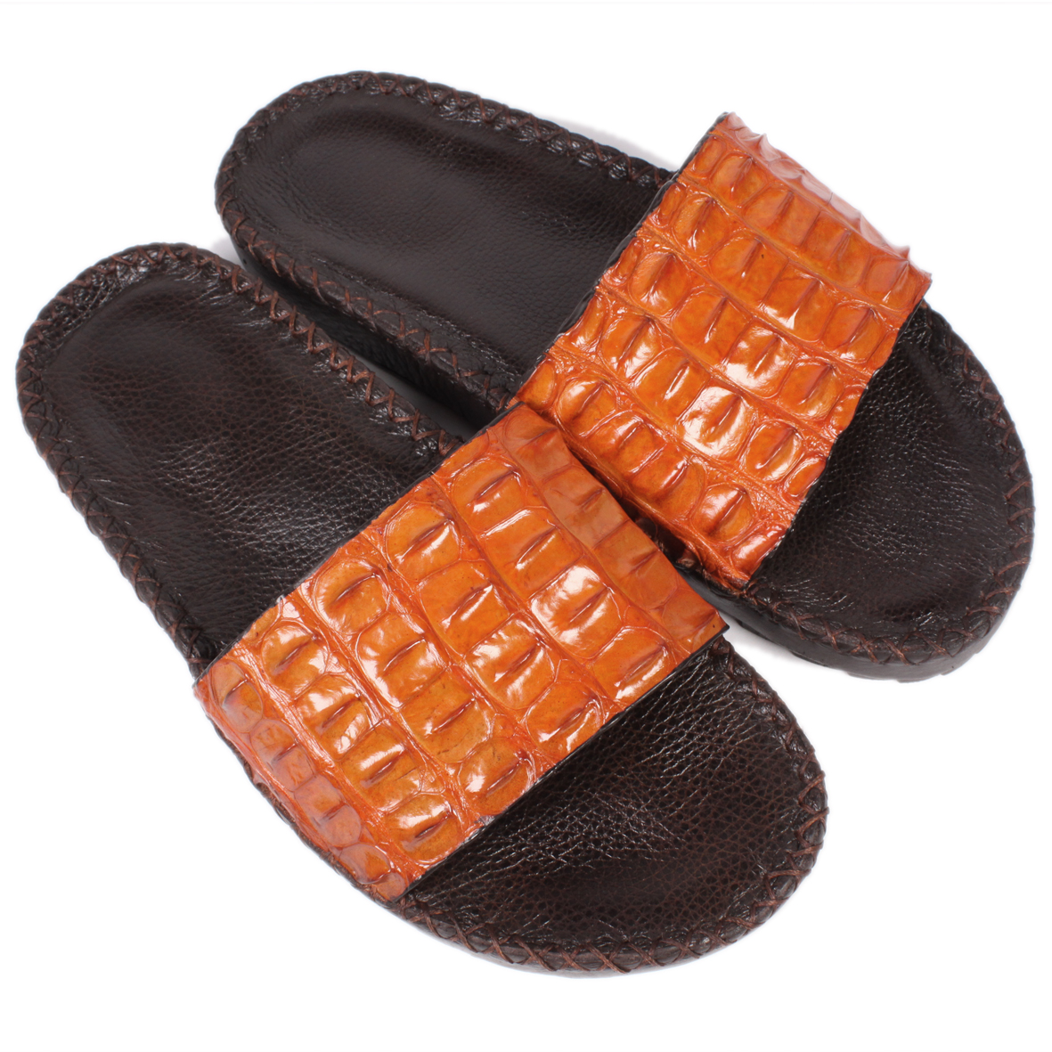 Dép nam da cá sấu 2 quai ngang màu nâu