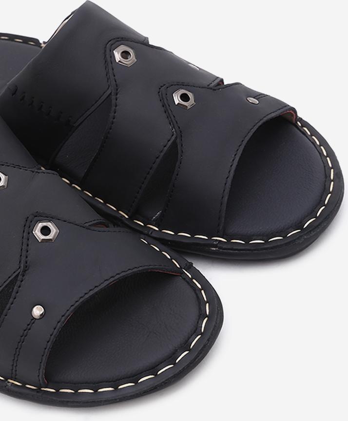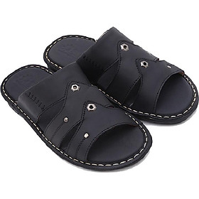 Dép nam Huy hoàng da bò quai ngang màu đen 7132