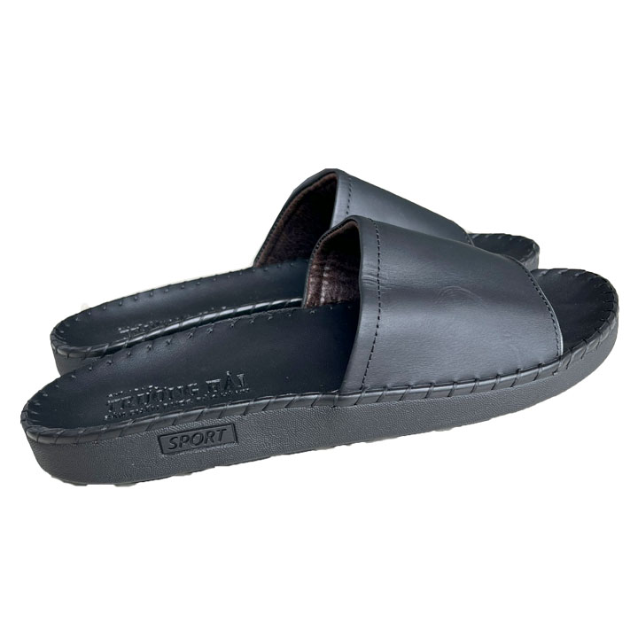 - Màu : đen - Chất liệu bên ngoài: quai dép da bò cao cấp tuyệt đối không bong tróc hay nổ da càng đi lớp da càng mềm mại bóng đẹp - Xuất xứ