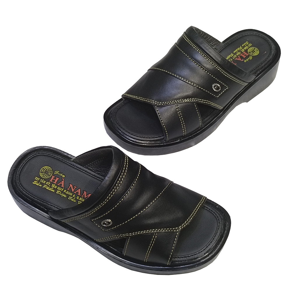 DÉP NAM DA BÒ CAO CẤP - THƯƠNG HIỆU HÀ NAM - Da bò thật, bền đẹp: Dép nam được làm từ 100% da bò thật, mềm mại, thoáng khí, đảm bảo độ bền cao