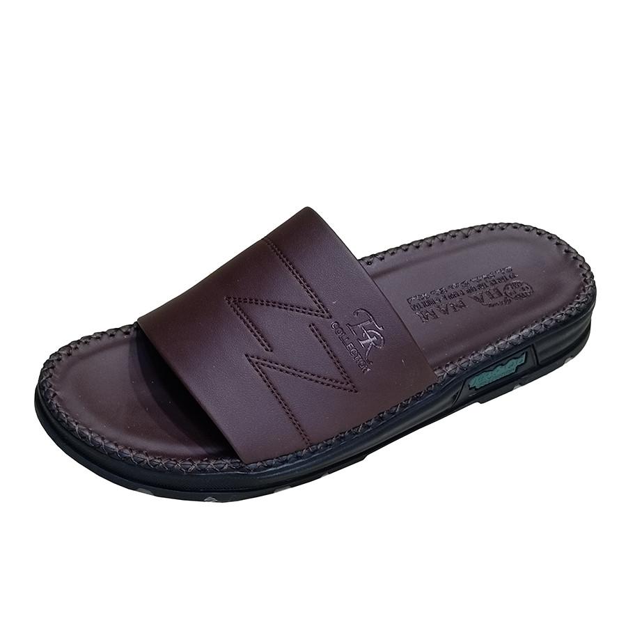 Dép nam may viền quai ngang đen nâu Trường Hải