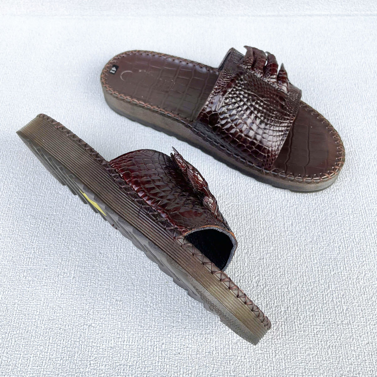 Dép Da Cá Sấu Quai Ngang Nam, Dép Quai Da Cá Sấu Thật 100% Nguyên Móng Đế Bọc Da Bò CS3