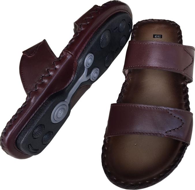 Mặt dép được làm bằng da bò thấm hút mồ hôi không hôi chân. Đặc biệt dép nam quai ngang được thiết kế với lớp da âm xuống đế tạo nên sự độc đáo, êm bền