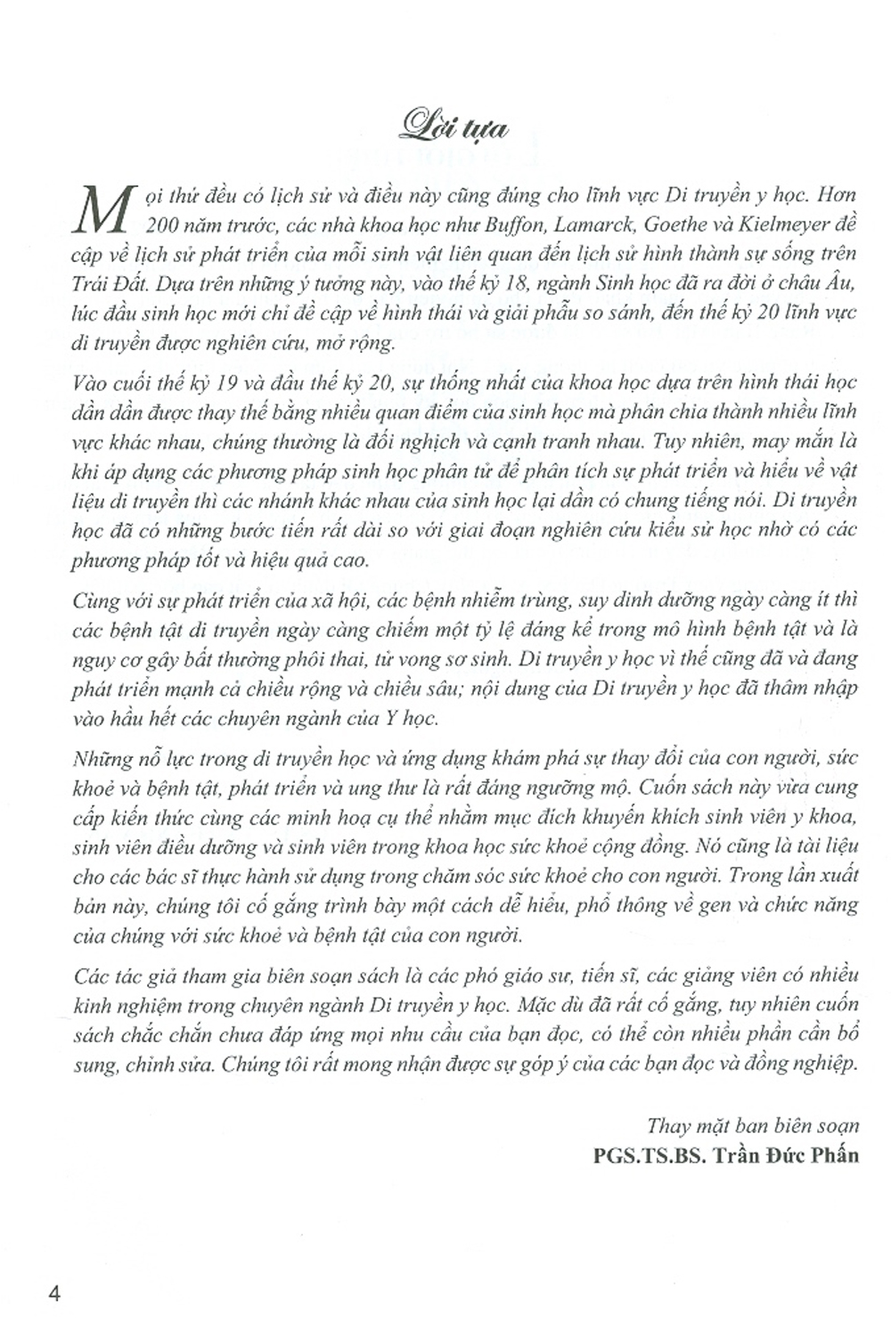 Cuốn sách Di truyền Y học do các giảng viên của Bộ môn Y Sinh học - Di truyền, Trường Đại học Y Hà Nội biên soạn, là cuốn tài liệu học tập và tham