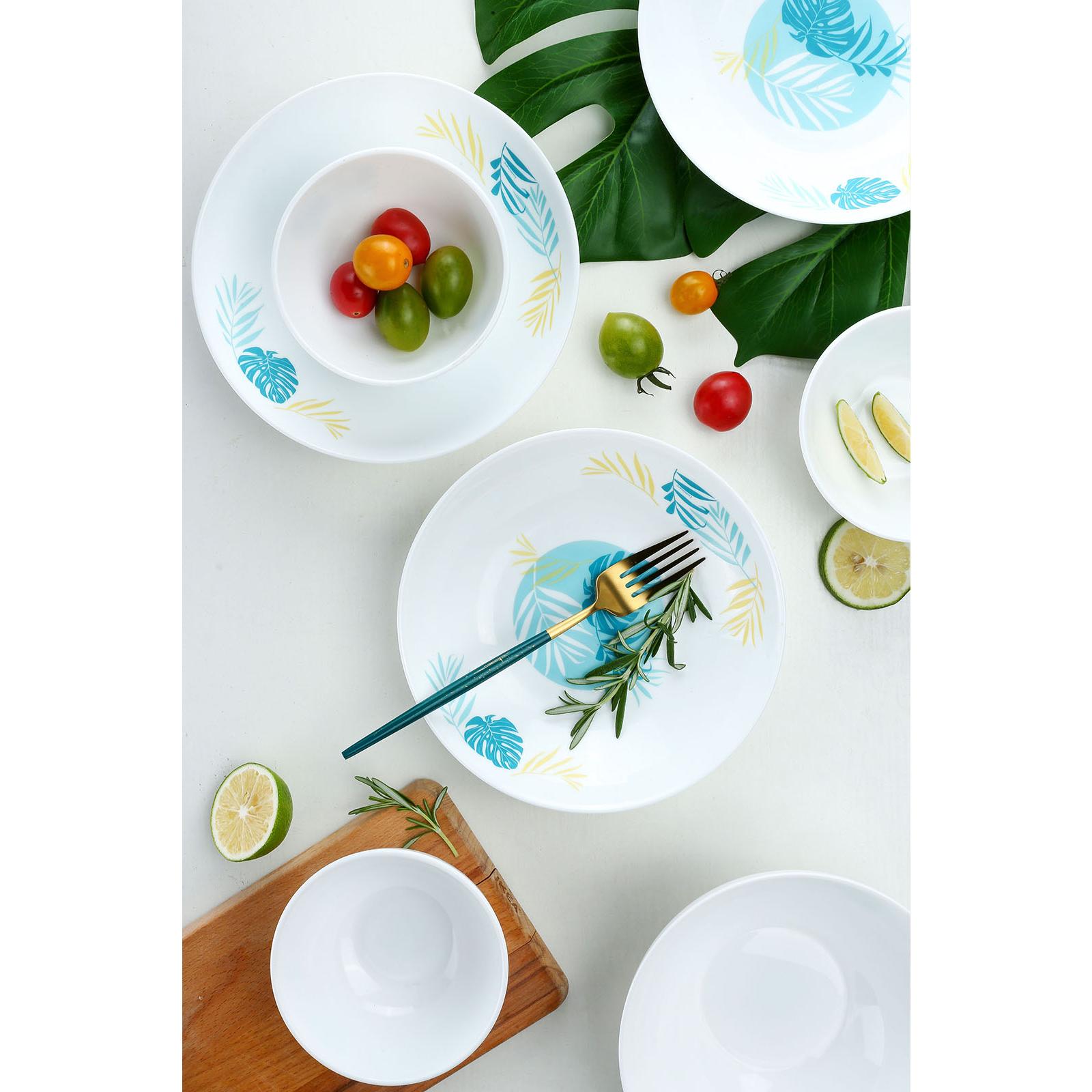 Đặc tính nổi bật: cường lực, kháng vỡ nhiều lần so với thuỷ tinh thông thường. Thiết kế hoa văn lá cây tạo cảm giác mát mẻ cho bàn ăn.