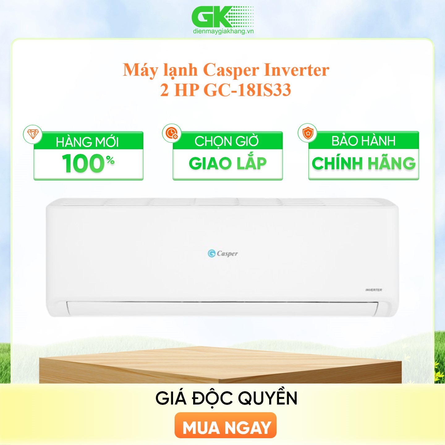 LƯU Ý: - ĐƠN HÀNG KHÁCH Ở HỒ CHÍ MINH --- SHOP GIAO MIỄN PHÍ (TRỪ CẦN GIỜ). - Thông số kỹ thuật Máy lạnh Casper Inverter 1 HP JC-09IU36 Đặc điểm sản phẩm - Model:JC-09IU36 - Màu sắc:Trắng - Nhà sản xuất:Casper - Xuất xứ:Thái Lan - Năm ra mắt :2025 - Thời gian bảo hành:36 Tháng - Địa điểm bảo hành:Toàn Quốc - Loại máy lạnh:Máy lạnh 1 chiều (chỉ làm lạnh) - Kiểu dáng:Máy lạnh treo tường - Công suất:1 HP - Công suất làm lạnh:9.000 BTU - Phạm vi làm lạnhDưới 15m² (từ 30 đến 45m³) - Độ ồn trung bình:Đang cập nhật - Thời gian bảo hành cục nóng:Đang cập nhật