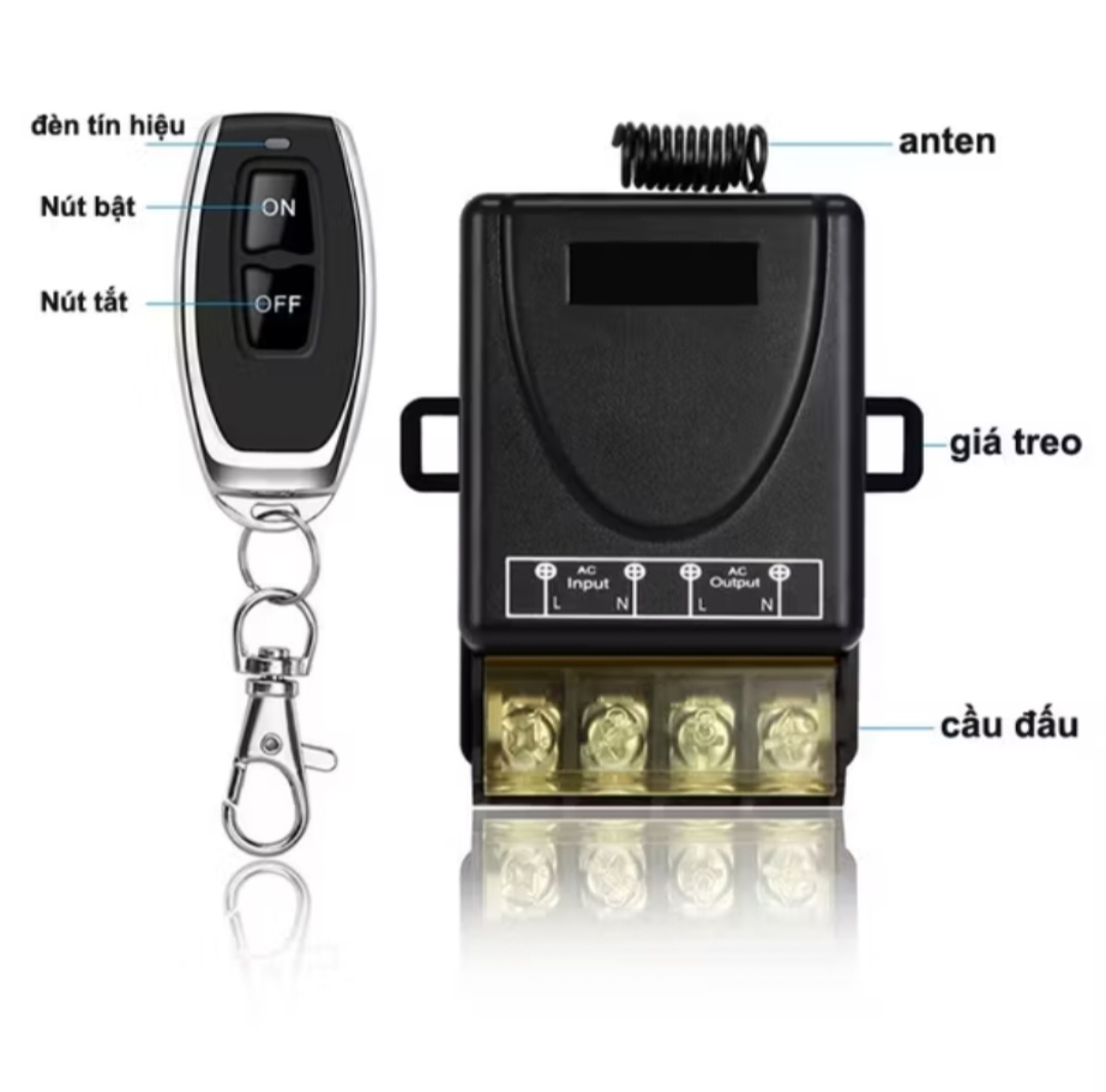 CHI TIẾT SẢN PHẨM Bộ điều khiển bật tắt các thiết bị điện từ xa cho máy bơm nước bóng đèn và các thiết bị điện khác khoảng cách xa 150m 25A điện áp sử