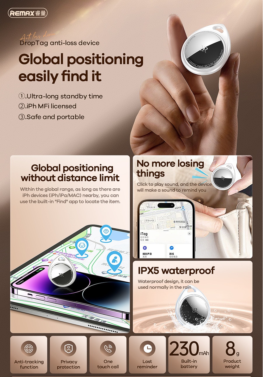Thiết Bị Định Vị DropTag Remax RT G2302 Chính Hãng, Sử Dụng Đa Dạng Nhu Cầu Cho Xe máy, ô tô, Thú Cưng, Con Nhỏ, Người già, Balo Túi Xách, Đồ Dùng Cá Nhân, Định