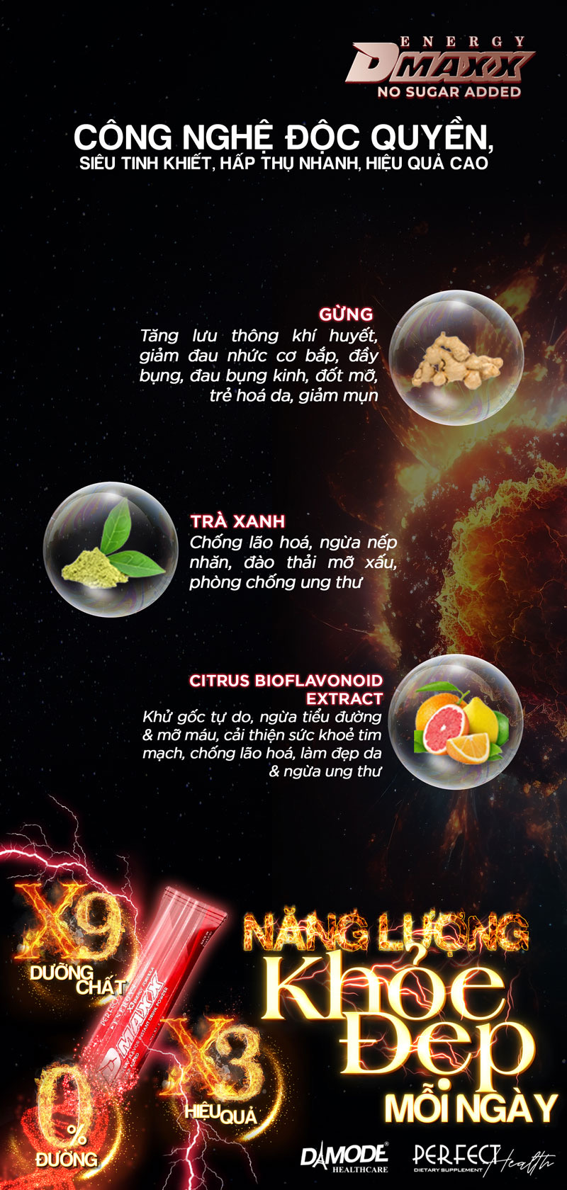 Dmaxx energy formula là sản phẩm thức uống năng lượng có chức năng bổ sung năng lượng cho người uống mỗi ngày dưới dạng thức uống hòa tan.