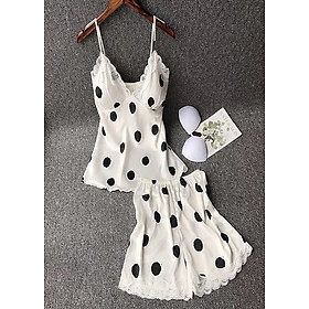 Bộ ngủ lụa cao cấp DORIS.ALLURE chấm bi hai màu xanh, hồng mềm mịn - BN089 ( CLIP QUAY TẠI SHOP)