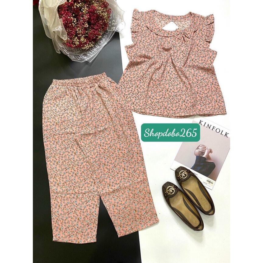 Mua tại TiktokĐồ bộ nữ,đồ ngủ mặc nhà lửng 9 tấc vải lụa mango cao cấp họa tiêt hoa nhí siêu cưng size đại 58-67kg.