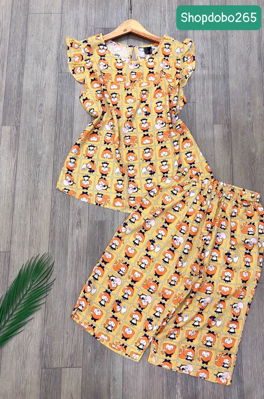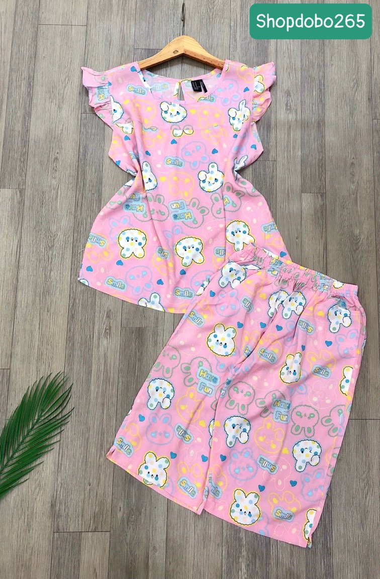 Đồ bộ nữ, đồ ngủ mặc nhà lửng tay cánh tiên vải lanh mềm ,mát BL 169 họa tiết dễ thương size 45-70kg. Chất: vải lanh (tole) 2 da mềm,mịn,mát, phù hợp với thời tiết