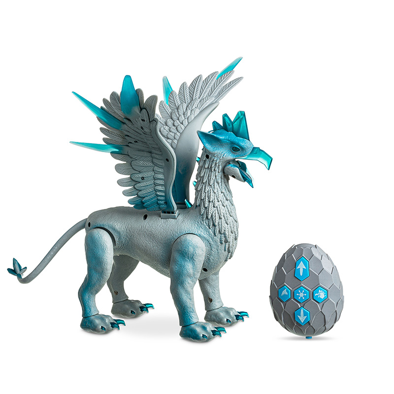 Điểu sư băng giá - 1312006301 của thương hiệu DISCOVERY #MINDBLOWN với khả năng phun khói độc đáo. Điểu Sư sở hữu 2 tiếng gầm thể hiện hai trạng thái tấn công và phòng thủ tách biệt. Với mỗi bước đi đầy uy nghiêm, Điểu Sư sẽ vỗ đôi cánh mạnh mẽ, và đôi mắt sẽ sáng lên như tia chớp. Bé sẽ được điều khiển dũng mãnh này di chuyển tiến, lùi, và trái, phải. Với từng khớp chuyển động như thật, bé sẽ cảm nhận được sự mạnh mẽ trong từng động tác của Điểu Sư này.