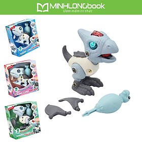 Đồ chơi lắp ráp khủng long với chất liệu nhựa ABS an toàn, màu sắc tươi đẹp, bắt mắt, các chi tiết dễ dàng tháo lắp và cất gọn, có thể xoay được như khớp chân, hàm, tay, đuôi. Chức năng phát ra âm thanh, ánh sáng mô phỏng tiếng gầm gừ của loài khủng long tạo thêm sự hào hứng cho các bé khi chơi.