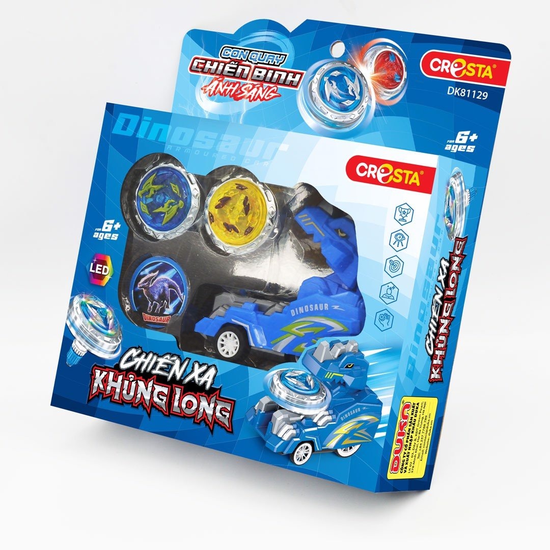 Con quay chiến binh ánh sáng :Chiến xa Khủng long, DK 81129 Đồ chơi con quay được lấy ý tưởng từ trò chơi dân gian từ xa xưa đã đi vào ký ức tuổi thơ