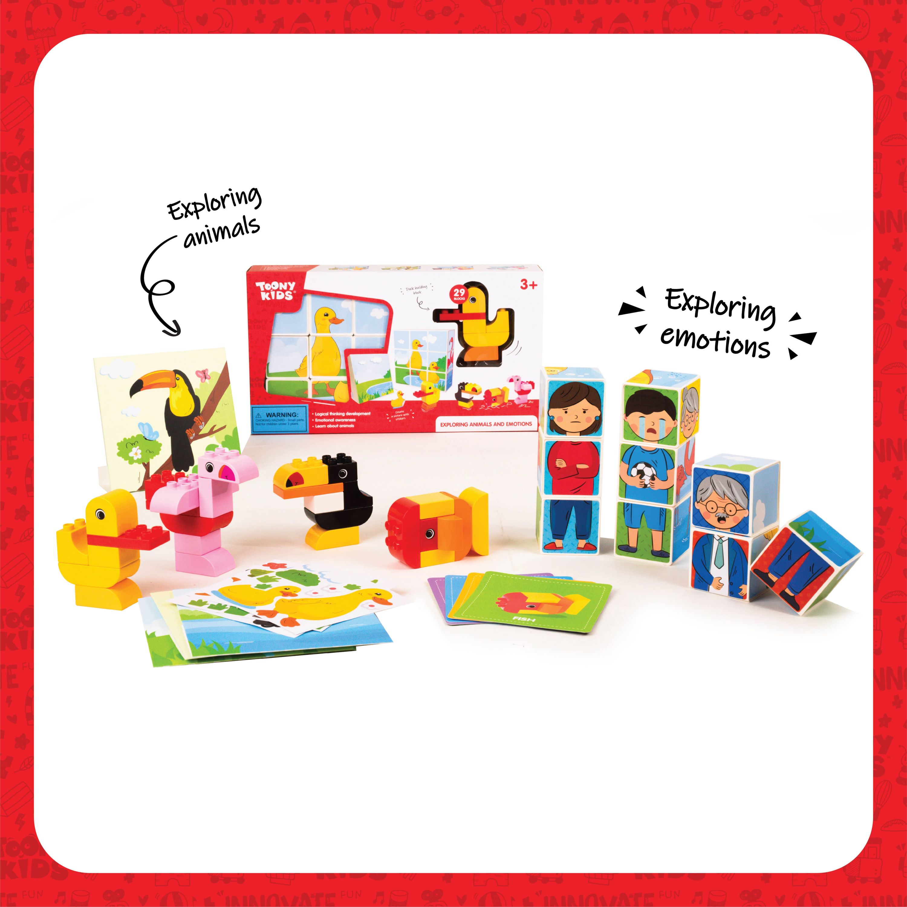 - Bộ xếp hình 3in1 khám phá cảm xúc và thế giới động vật Toonykids sẽ khơi dậy trí tưởng tượng của trẻ với mô hình 3 trong 1 - Khối cảm xúc - Bộ sticker động vật - Khối lắp ghép động vật.