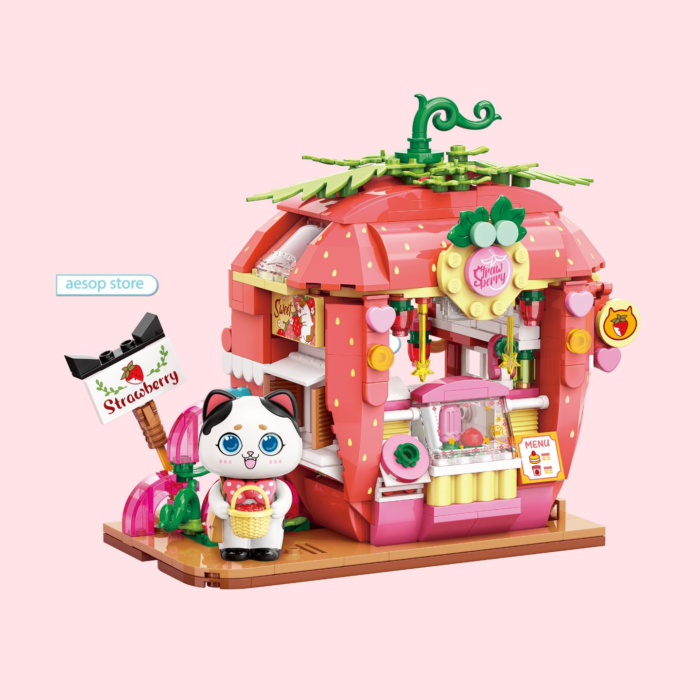 Đồ chơi lắp ráp Mô hình Cửa hàng Dâu tây tạo thành phẩm 14 8 15 (cm) với nhiều chi tiết nhỏ xinh xắn