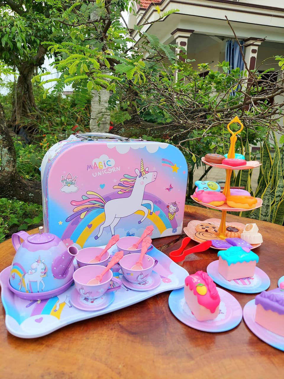 - Bộ đồ chơi tiệc trà bánh họa tiết đáng yêu có kiểu dáng thiết kế ngộ nghĩnh, đáng yêu, màu sắc bắt mắt.