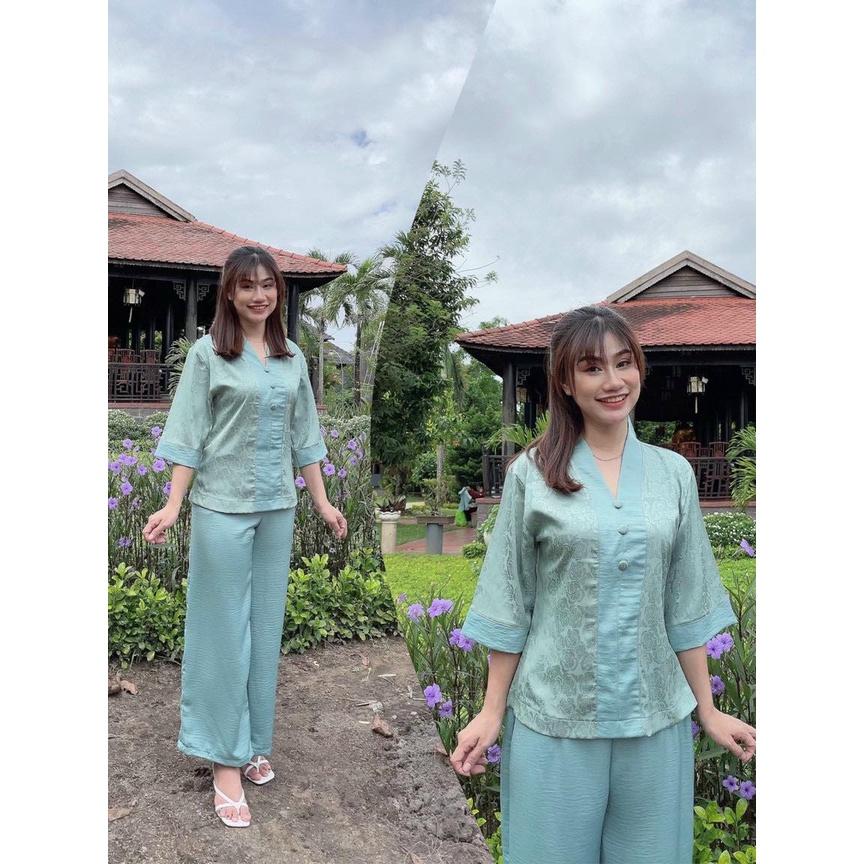 SET ĐỒ LAM ĐI CHÙA ÁO BÀ BA KÈM QUẦN DÀI CHẤT GẤM