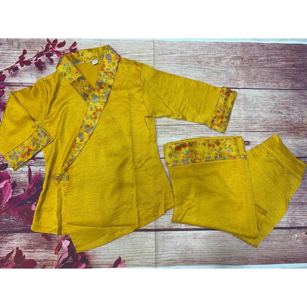 Quần áo phật tử, đồ lam đi chùa mẫu gấm xẻ tà #fashion #quanaophattu