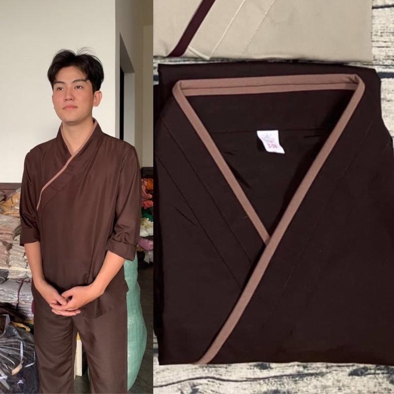 Áo choàng áo Pháp phục - áo tràng khoác ngoài dành cho Phật tử màu nâu lam giá rẻ - áo lam đi chùa