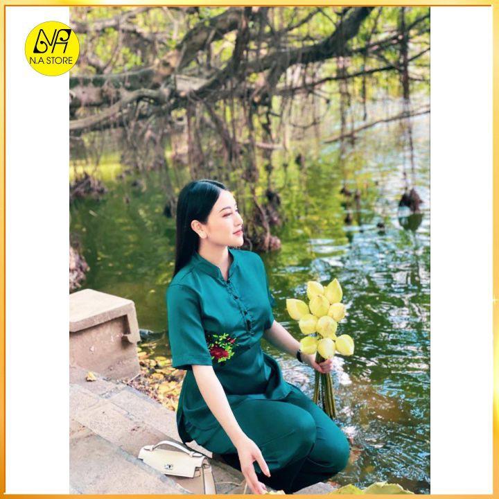 ✨Đồ Lam Nữ Đi Chùa - Bộ Đi Lễ Chùa 2AL001 Trang Nhã Thêu Hoa Cổ Trụ Dành Cho Phật Tử