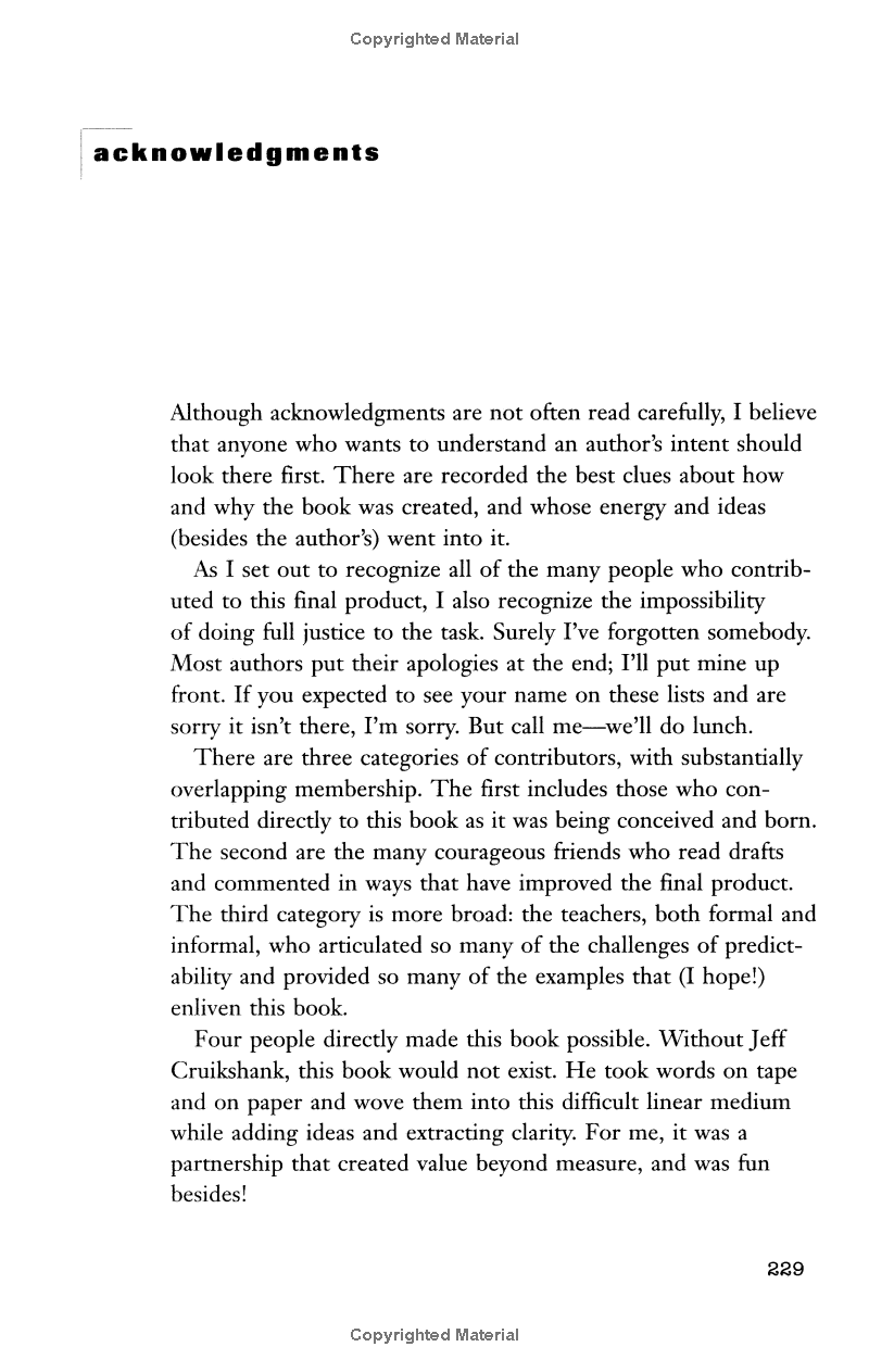 The book presents tools to hone predictive powers, make decisions, and measure risk, as well as to understand conflict and improve human interactions. It is as much a useful lens for individuals as they interpret their own lives as for corporations as they predict and improve on their own futures.
