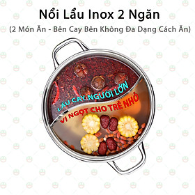 - Nồi lẩu inox 2 ngăn có thể sử dụng được trên bếp ga, bếp từ, thiết kế nắp đậy bằng kim loại vừa khít, sạch sẽ, tiện dụng, giúp công việc nội trợ trở nên dễ dàng hơn.