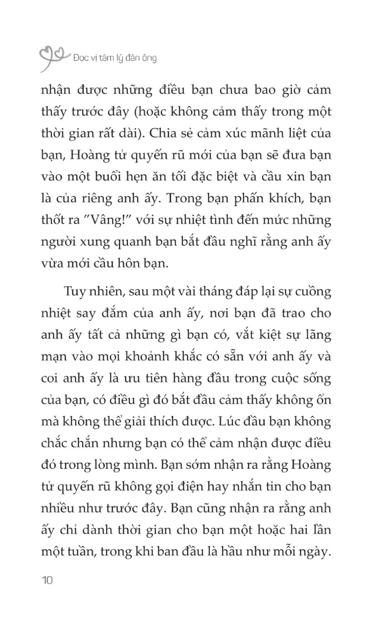 Đọc Vị Tâm Lý Đàn Ông giúp bạn hiểu một số lý do phổ biến nhất khiến đàn ông mất hứng thú trong tình yêu, cung cấp cho bạn chìa khóa để duy trì sự quyền lực của mình bất cứ khi nào một người đàn ông rút lui về mặt tình cảm hoặc cố gắng làm bạn thất vọng.