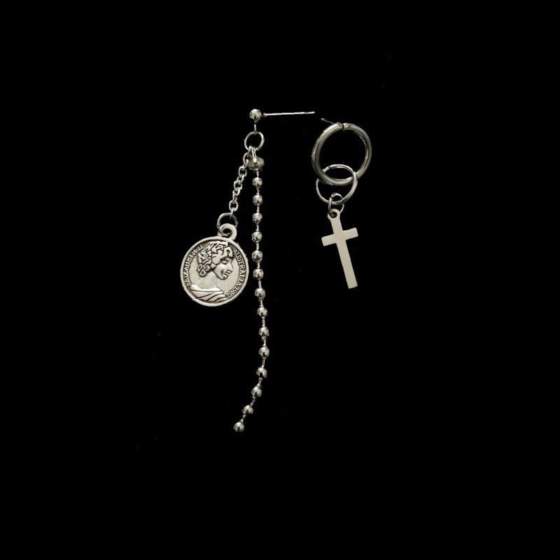 ✨Đôi bông tai nam nữ đồng xu chữ thập 1 đôi khác biệt thiết kế