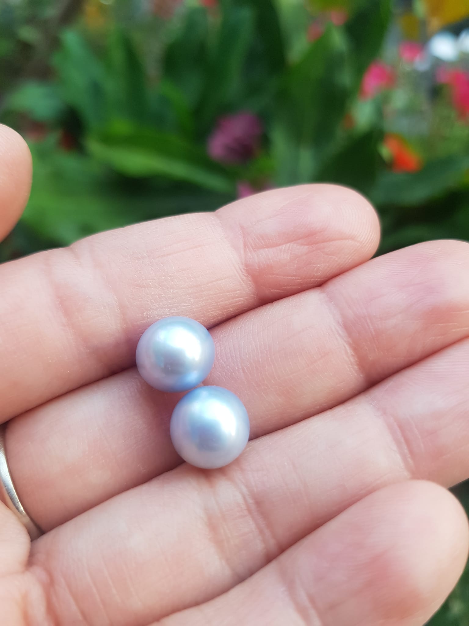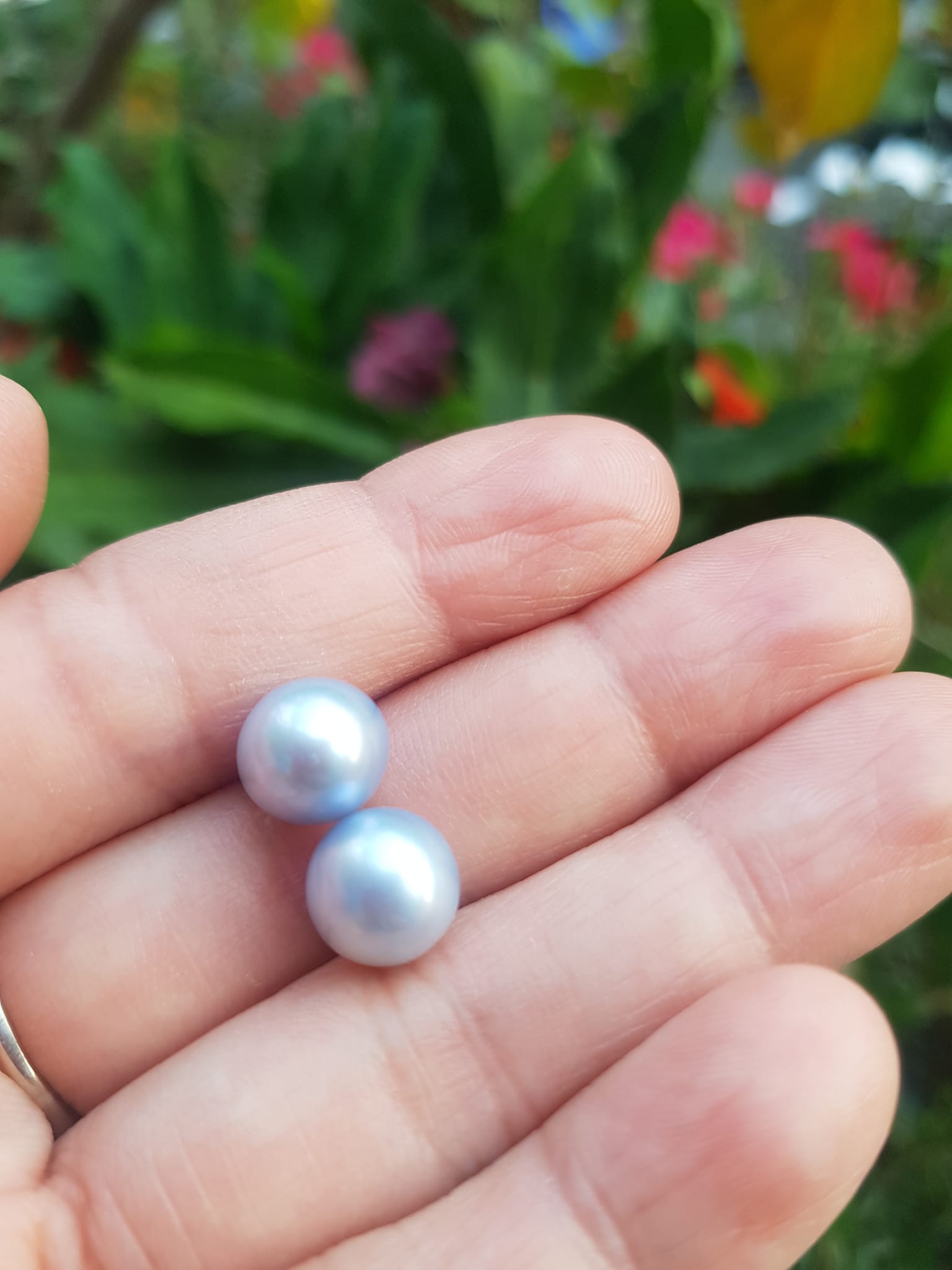 Đôi Bông Tai Ngọc Trai xanh dương nhẹ bóng đẹp 9mm Size hạt 9mm ngọc trai cao cấp Shop Sunny Quận 8