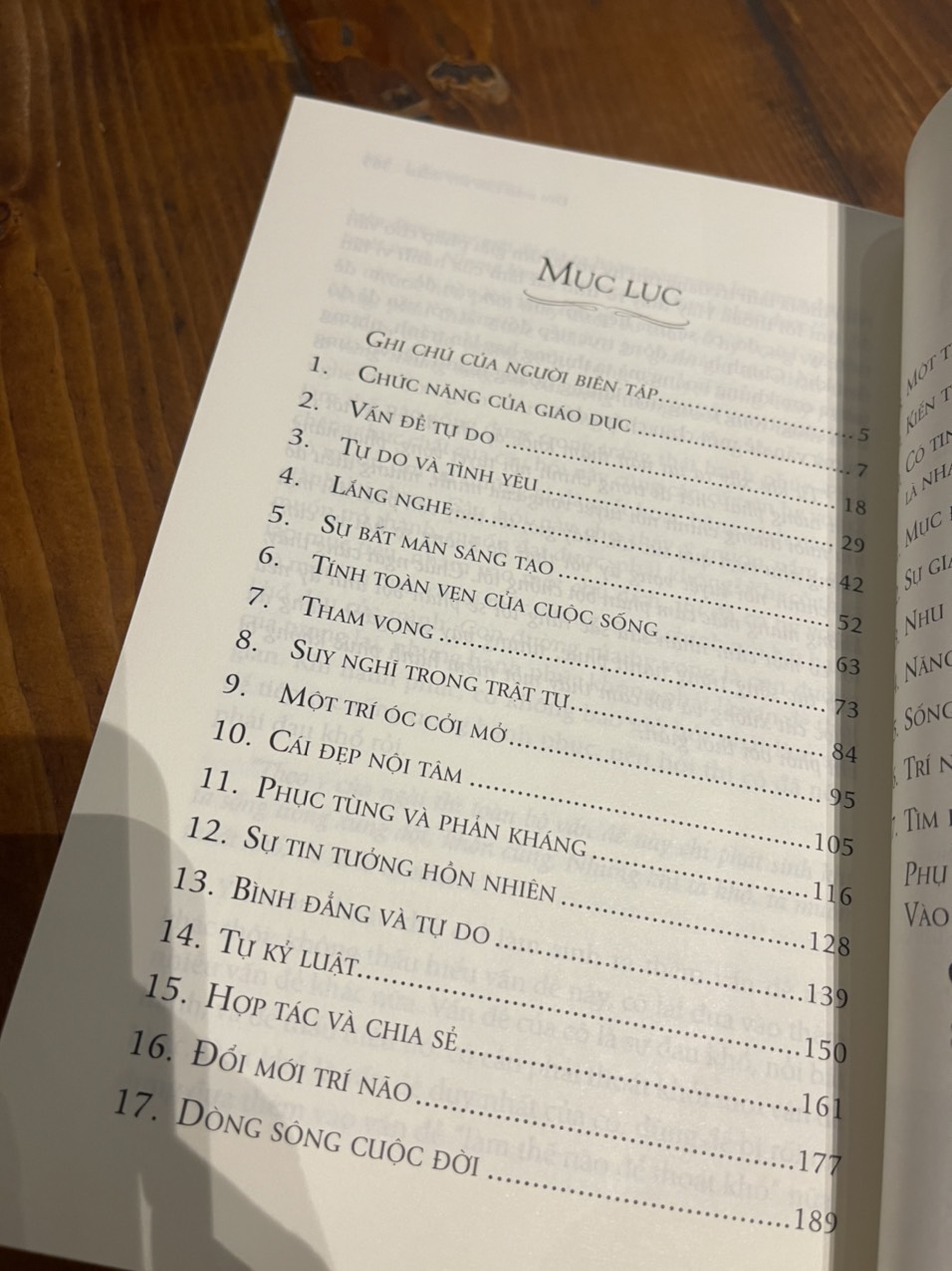 Những đoạn hỏi - đáp trong cuốn sách được chia theo từng đề tài: từ giáo dục, tự do, tình yêu, sự bình đẳng, cho đến cách lắng nghe, sự sáng tạo, tham vọng, cách tư duy, tinh thần cởi mở và tính toàn vẹn của cuộc sống. Mỗi phần đều chứa đựng những lập luận sâu sắc và thường bắt đầu bằng những câu hỏi dẫn dắt người đọc tự suy ngẫm, chứ không định hình lối tư duy của độc giả hay cố đưa ra một kết luận rập khuôn, bởi theo Krishnamurti, “một trí não thông minh là một trí não luôn luôn học hỏi, chứ không bao giờ kết luận”.